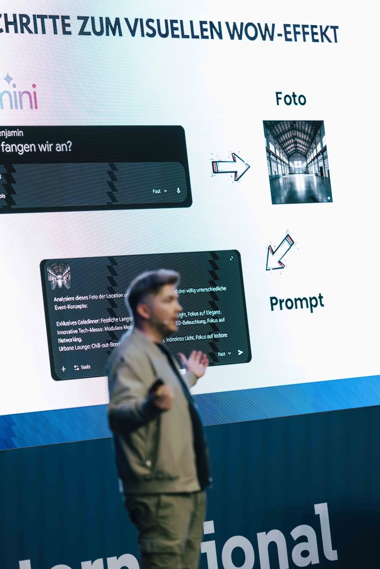 Die Workshops von Benjamin Desche sind geprägt von seinen Keynotes auf Events wie der BOE International. Er zeigt praxisnah, wie sich ChatGPT von einem Spielzeug zu einem produktiven Werkzeug entwickeln lässt.